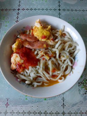 浇汁。炒个西红柿鸡蛋,可稍加点水,有个汁,然后放到准备好的面条上,拌均就可以吃了