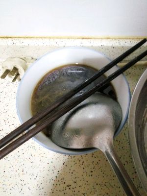趁蒸面的时间,拿另一个空碗放陈醋、蒜、花椒水。