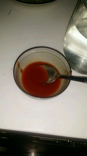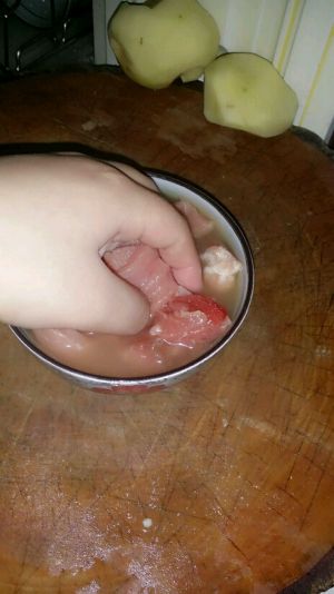 趁着腌肉倒水搅匀,番茄酱好难倒出来……