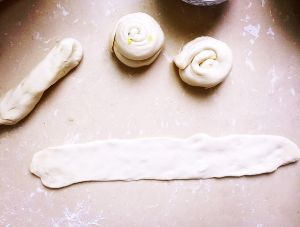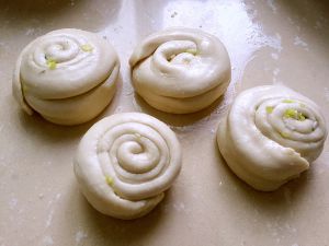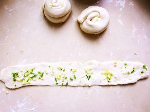 做好的卷 有点像花卷 如果是发酵好的面上蒸笼蒸就是花卷了