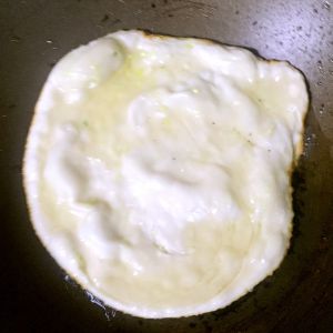 锅里倒油,用大勺子挖一勺,小火煎熟。