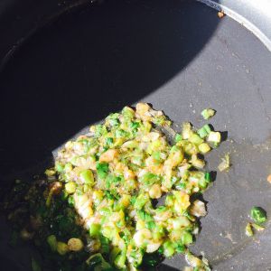 热锅热油加入葱花炒出香味,再加入五香粉 盐 糖,盛出备用。