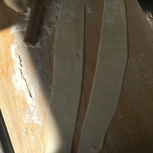 最后用擀面杖擀薄(擀薄的的面皮,煎出来会更加香脆,如果你不喜欢这种口感,也可以省略这一步。)