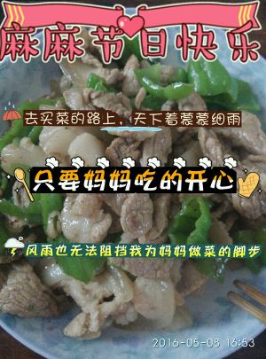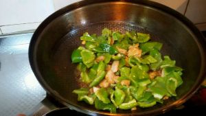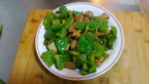 青椒炒肉新鲜出炉,香,好香。出锅前加点味精。