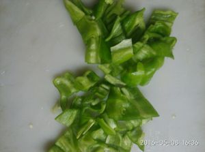最后放入青椒,芹菜,鸡精炒均匀就ok了,装盘。