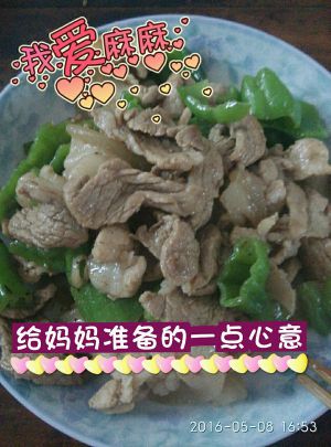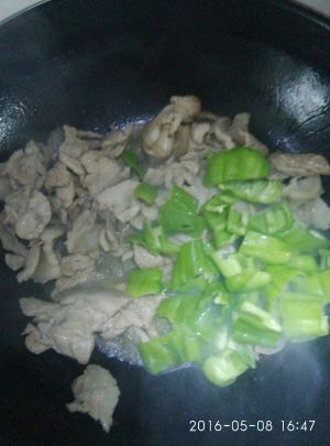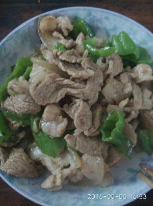 青椒切丝,油烧热放肉丝炒白,放青椒炒,调味即可.