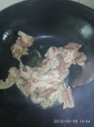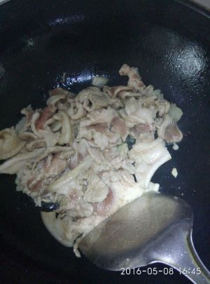 依次放入瘦肉,炒2分钟左右,放入酱油上色。