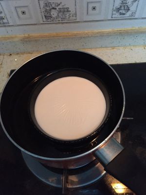 将牛奶用锅加热,煮热但不要煮沸,不然不利于奶皮凝结。