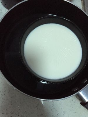 先把牛奶倒入锅中,加入白砂糖。白砂糖用量按个人喜好,因为我不太喜欢太甜的,就放了4勺糖,感觉甜味刚刚好。重点来了!!煮牛奶时,锅盖不要盖严实,留一条小缝,牛奶就不会溢出来。等到牛奶冒小泡,就能关火,倒入碗中放凉。