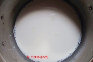 牛奶我没有全煮,因为三个人吃,倒了3碗牛奶。鸡蛋清要多少?牛奶和蛋清大概按1:1的比例,否则蛋清少了可能不成型。