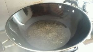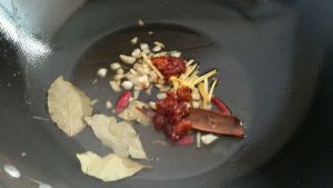 把刚才的配料放油锅里爆香,可以用刚才的油,也可以重新放油