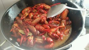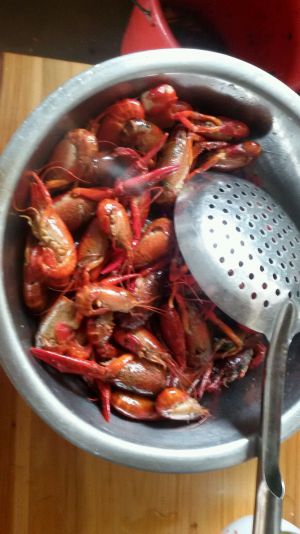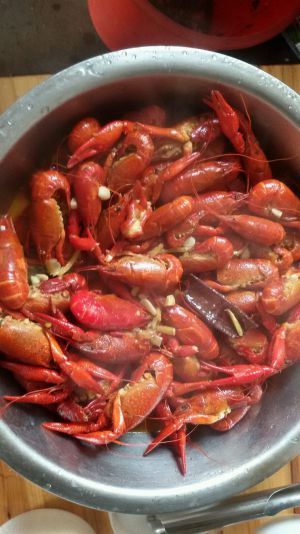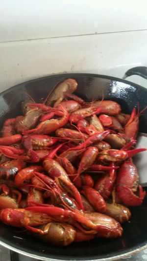 小龙虾爆炒,然后放点糖,盐,白胡椒粉十三香,翻炒吧