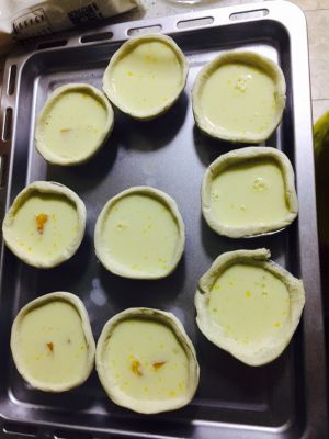 倒入挞模,7分满就可以了,不能多,多了就悲剧了。。。