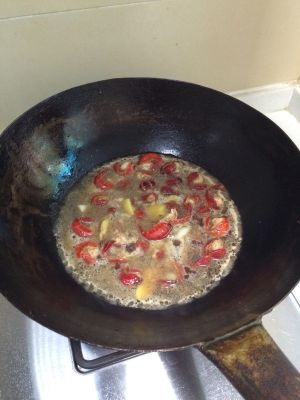 炒制结束后,烹入料酒,给少量盐,黄冰糖,少量醋和适量生抽。然后给水,进行烧制。我这个照片是先拍的,后来又加了生抽的。