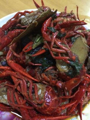热锅倒油,放入香叶,花椒,干辣椒碎,八角,爆香,倒入龙虾肉,开始爆炒二分钟(龙虾肉特别容易熟,炒的时间不宜过长了,不然口感会干瘪的)加入盐就可以出锅了