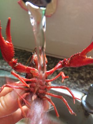 小龙虾买回来后放水龙头下冲洗几遍,然后放入淡盐水中养半天。