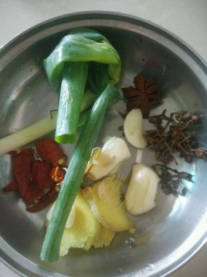 蒜,小米辣,生姜,切小块备用,准备好大香八角桂皮