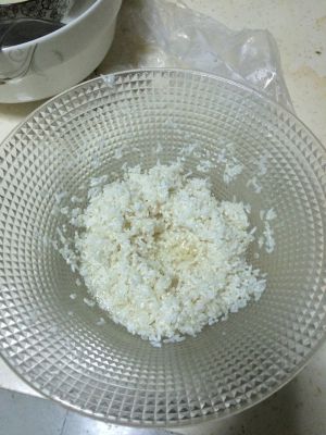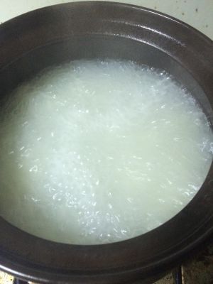 锅中放入皮蛋、姜丝和剩饭,加水没过所有材料,水量自己掌握,大火烧开转小火,加入自制味精,如没有可到最后一步加味精。煮5分钟左右,米花绽开即可。