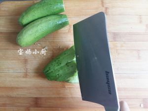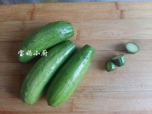 黄瓜洗净,去头尾,用刀将黄瓜拍裂