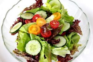 材料准备好,因为今天菜场苦菊菜卖完了,所以用马蹄菜代替了,蔬菜色拉的蔬菜本生也比较随意,可以根据自己口味替换