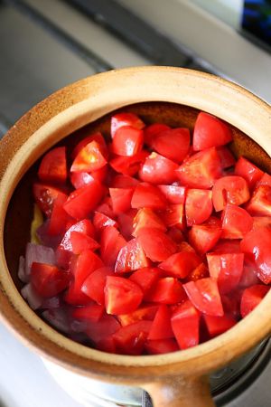 番茄去子切丁,也可以先将番茄开水烫一下然后去皮切丁。吃洋葱的小伙伴也可以同样步骤准备洋葱丁,我不太喜欢生洋葱就省略了