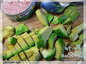 牛油果切丁,然后淋上少许柠檬汁,可以让牛油果不变色,并且更好吃!