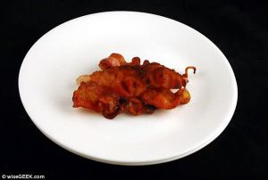 鸡胸肉切小块,加料根据各人口味,我的建议是橄榄油、黑胡椒、盐和一点点柠檬汁。然后放入烤箱烤熟,或者用刚刚煎过培根的锅子煎熟,不用另外再加油