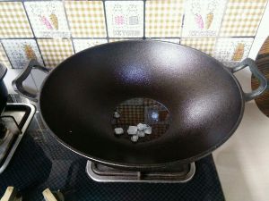 炒锅内放入适量食用油,凉油下适量冰糖,保持中小火融化冰糖。