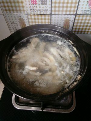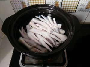 加入开水没过鸡爪,加盖顿煮。