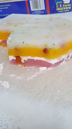 面粉按发酵流程除黄油入面包机和面功能2次,第三次和面加入黄油,第四次和面加醒面90分钟,在完全发酵后将面粉放在操作台拍去空气擀成长方形涂上色拉酱撒上肉松,然后慢慢卷起来收尾部涂上蛋液(忘记拍了)切成小块放入磨具