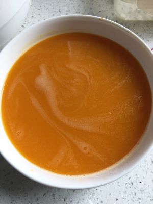 色拉汁:将橙汁 ( 去除果核 ) 放小锅内,加入蒜头、肉豆蔻,用小火煮约 1 小时成糖浆状,将色拉汁过筛,趁热加入香草籽 ( 用小刀取出 ) 及橄榄油拌匀备用。
