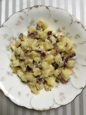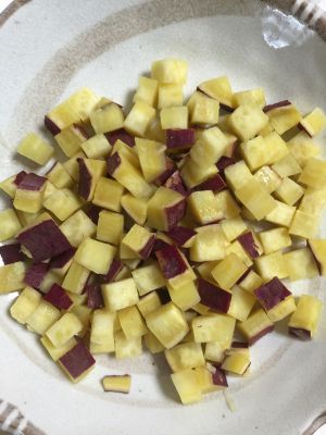 切成丁,包上保鲜膜,微波炉里加热3一4分钟后取出