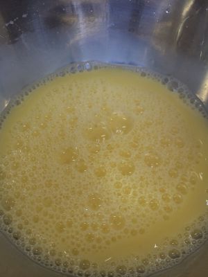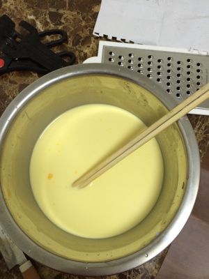 然后用勺子搅拌均匀,这样蛋挞液就完成了~