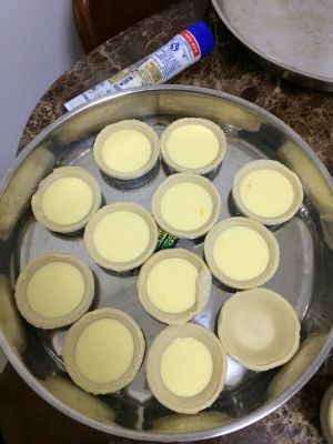 将挞水倒入蛋挞皮中