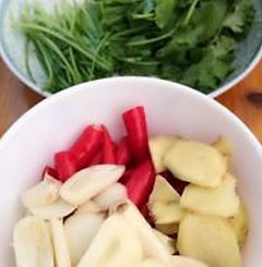大蒜,姜切片,葱切节