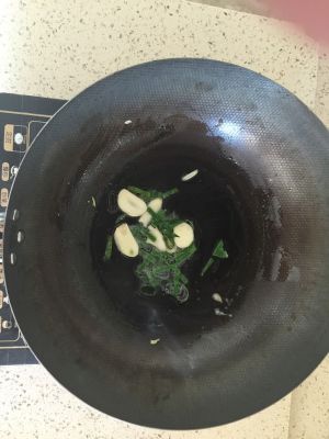待香菇微焦时加入葱花和蒜末,翻炒出香味