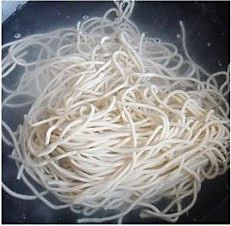 将面条放入水里煮熟捞出
