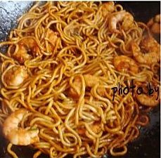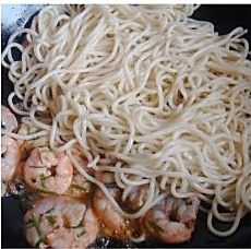 虾仁炒熟后放入面条