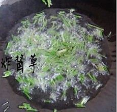锅内倒油后放入野葱爆香