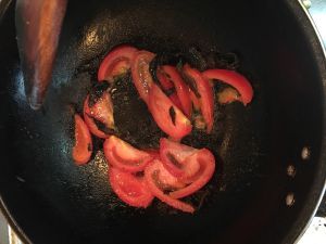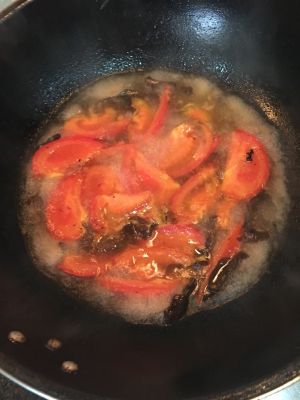 锅里倒入少量油,待油变热,加入西红柿翻炒