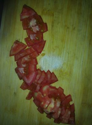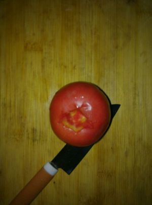 西红柿切块,鸡蛋打撒备用,《可以在打散的鸡蛋里加少许水,这样会更嫩》