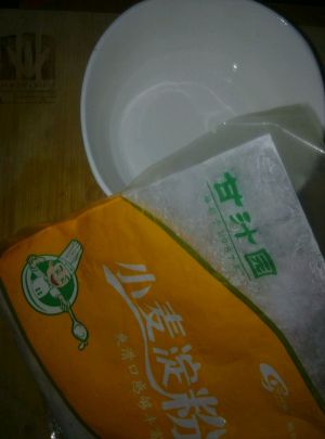 取一只碗,放入少量水,加入,里面加入适量淀粉。什么淀粉都可以。我这里用的小麦淀粉