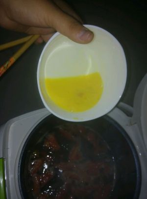 淀粉混合液,等锅内再次沸腾,把淀粉水放入锅内。