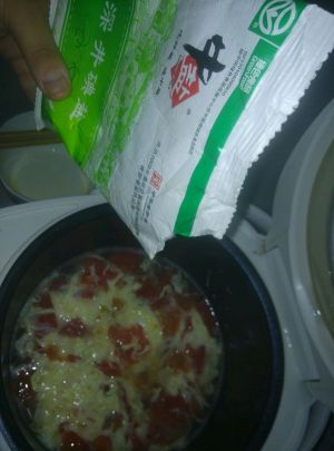 等锅开了,也就是水沸腾了,把切块的西红柿放入锅内。