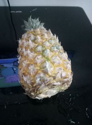 盖上菠萝盖,用牙签封起来,上锅蒸50分钟左右(买菠萝的时候因为没有小的,所以买的有点大了,蒸的时间略长,可以买小一点的菠萝,根据菠萝的大小可以适当加减时间)