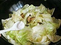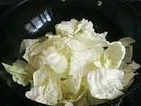 然后放入撕好的包菜,煸炒几下,加入酱油