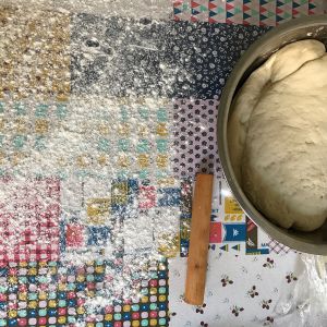 然后擀成薄片,最好是擀成中间厚,周边薄的状态。