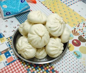 包好的包子放入蒸锅中再次发酵20min左右,冷水大火蒸制15min,关火后等2min左右再出锅