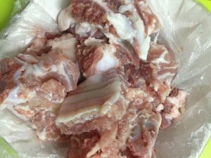 排骨飞水后,冲洗干净浮沫;生姜切片;