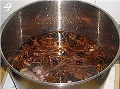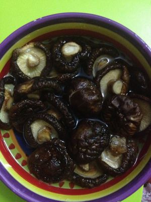 茶树菇用水浸泡至软后切去根部,清洗干净;